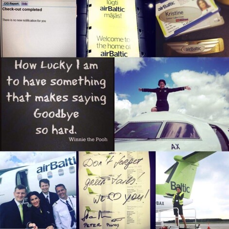 Kristīnes kopējais darba stāžs aviokompānijā "airBaltic" ir 8 gadi, bet vispār viņa ir stjuarte aptuveni 10 gadus, jo divus gadus nostrādāja citā lidsabiedrībā. Aizejot no "airBaltic", viņas sajūtas raksturoja Vinnija Pūka slavenais teiciens: "How lucky I am to have something that makes saying goodbye so hard." Tulkojot no angļu valodas, tas nozīmē: "Cik es esmu laimīgs, ka man ir kaut kas tāds, kas padara ardievas tik smagas."