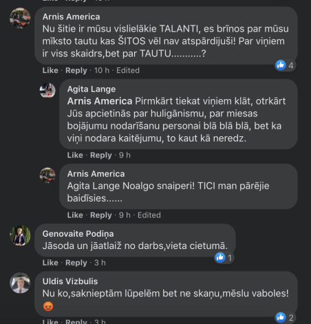Pats Krištopans savas publikācijas komentāru sadaļā diskusijās neiesaistās, taču citi tur tikmēr diskutē, kurš būtu efektīvākais veids attēloto personu fiziskai iznīcināšanai, un pieprasa, lai ripo galvas: