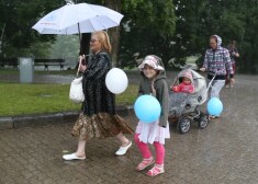 Lietū un negaisā bērnu aizsardzībai veltīta akcija pulcē vairākus desmitus cilvēku. FOTO