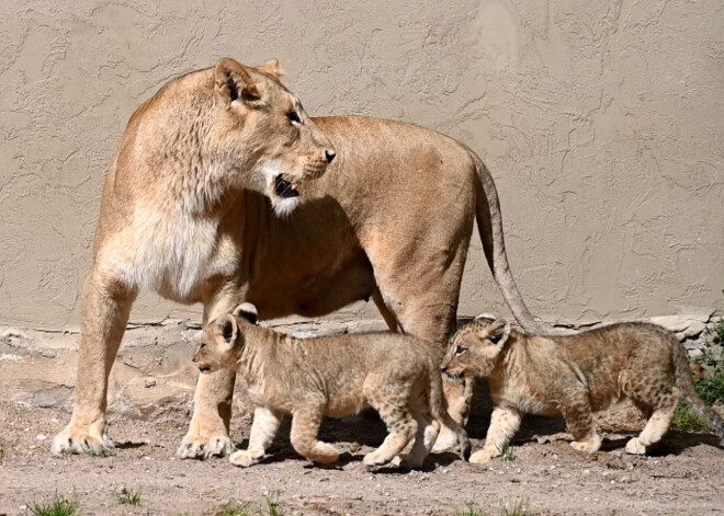Zoodārzā informēja, ka lauvu puika un lauvu meitene šobrīd attīstās atbilstoši vecumam un labos laika apstākļos daudz laika pavada apmeklētājiem pārredzamajā pastaigu laukumā.