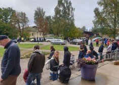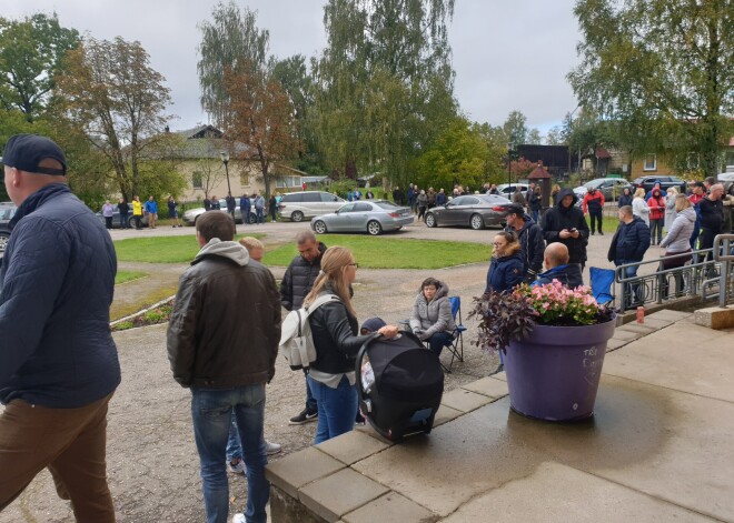 Cilvēki Sedā gaida rindā pēc "Janssen" vakcīnas