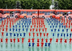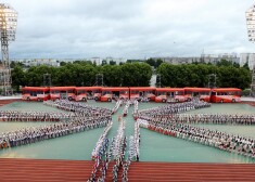 Dalībnieki un valsts amatpersonas dodas atceltajā svētku gājienā