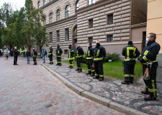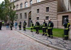 Pie Saeimas pulcējušies daži desmiti ugunsdzēsēju, kā arī vairāk nekā 100 viņu atbalstītāji, lai protestētu pret noteikto vakcinācijas pret Covid-19 ...