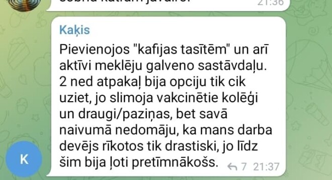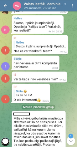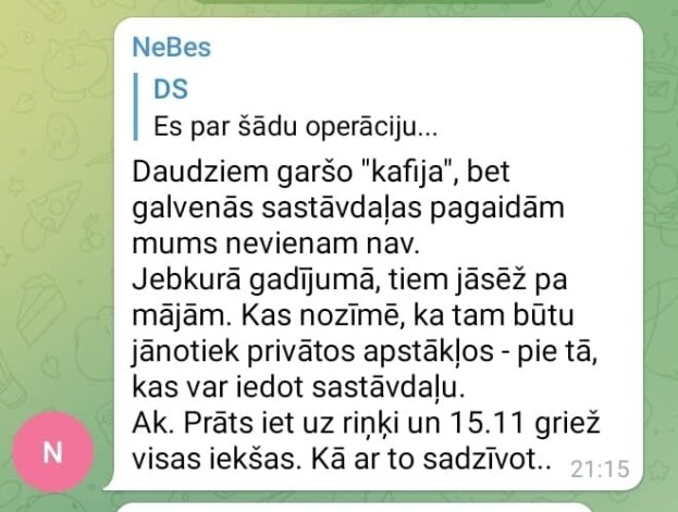 Tikmēr “Telegram” grupā “Valsts iestāžu darbinieki” ļaudis organizējas operācijai ar nosaukumu “Kafijas tase”.