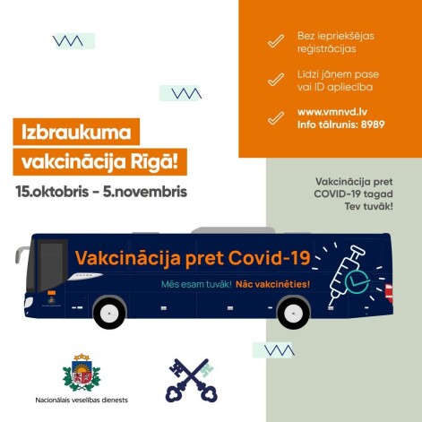 "Tagad vakcinācija pret Covid-19 Rīgā būs vēl tuvāk cilvēkam. Speciāli aprīkoto izbraukuma vakcinācijas autobusu pieturvietas atradīsies lokācijās, kas ir pa ceļam, pieejamas un kur ir iedzīvotāju dabiskā plūsma. Piemēram, pie māju masīviem, veikaliem, pie tirgus, pie pasta nodaļas, teātra, Brīvības pieminekļa un citviet. Tas padarīs vakcināciju vēl pieejamāku arī tiem, kuriem ir pārvietošanās grūtības," teica Nacionālā veselības dienesta Vakcinācijas projekta nodaļas vadītāja Eva Juhņēviča.