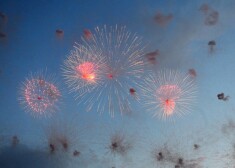 Ar kuplu skolēnu dalību un uguņošanu oficiāli atklāti skolēnu dziesmusvētki. FOTO