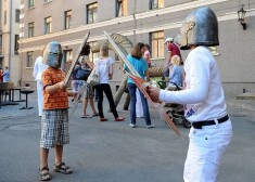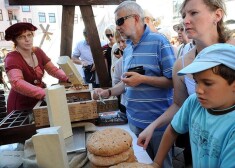 Viduslaiku tirgus Rīgas svētku laikā laukumā pie Sv. Pētera baznīcas