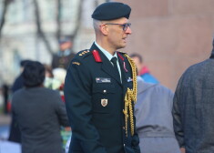 FOTO: ar ziedu nolikšanu, militāro parādi un krāsu lidojumu Rīgā tiek atzīmēta Latvijas 103. gadadiena