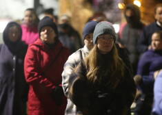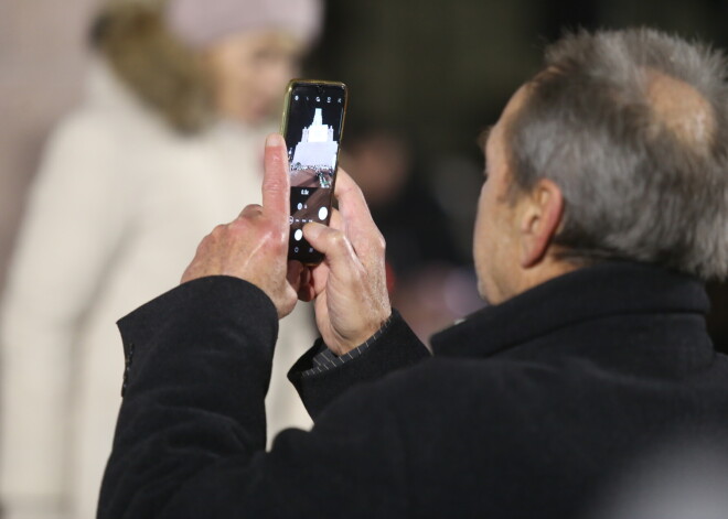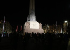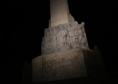 Cilvēki apbrīno par ziedojumiem izgaismoto Brīvības pieminekli