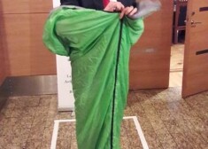 Preses konferencē, rādot, ka viesis neaizņems daudz vietas, rādīja arī Rīgas mērs Nils Ušakovs, iekāpjot guļammaisā.
