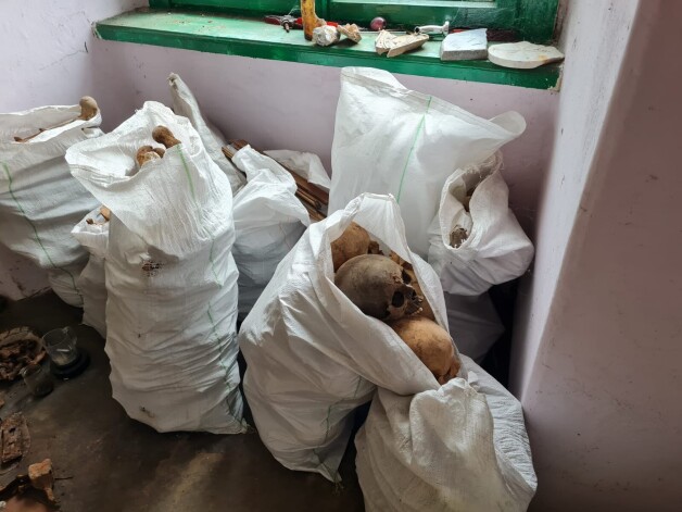 Ilūkstes klostera ēkā paveras baiss skats ar maisos saliktām cilvēku mirstīgajām atliekām