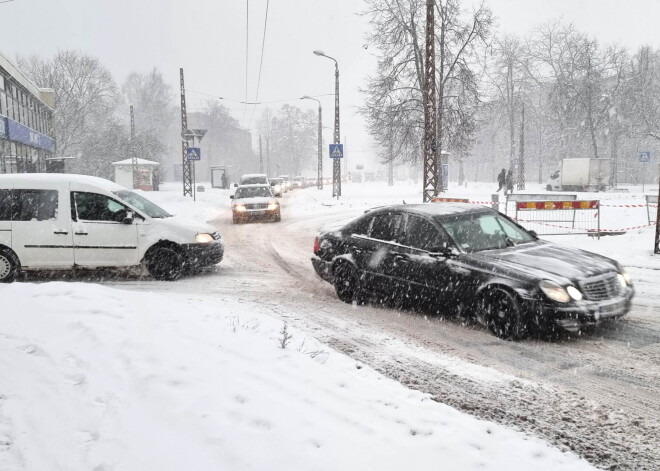 Sniegs galvaspilsētā izraisījis satiksmes haosu