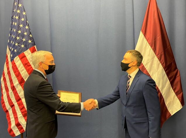 Apbalvojums tika pasniegts šodien virtuālā tiešsaistes ceremonijas tiešraidē no ASV Valsts departamenta, Vašingtonā, Kolumbijas apgabalā. Vēstnieks Kārvails paniedza apbalvojumu Jurisa kungam ASV vēstniecībā Latvijā.