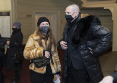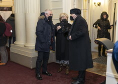 FOTO: ļaudis pulcējas izrādes "Vīrs, kas zināja čūskuvārdus" pirmizrādē Nacionālajā teātrī