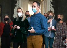 Skatītāji ierodas uz muzikālo pasākumu "100 gadi ar Piafu"