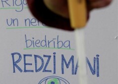 Gājienā vājdzirdīgo un vājredzīgo atbalstam Rīgā pulcējās 8 cilvēki. FOTO