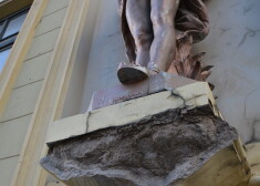 Viņa secinājums – skulptūras pamatne ir droša, tikai tās apmetuma plaisās iekļuvis ūdens un sals, un atkusnis atspridzinājis lielu daļu biezā apmetuma nost.