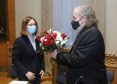 Apliecību un krūšu nozīmi pasniedza Rīgas vicemēre Linda Ozola (JKP), sveikšanā piedalījās arī tieslietu ministrs Jānis Bordāns (JKP) un Saeimas Juridiskās komisijas vadītājs Juris Jurašs (JKP).