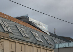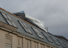 Spēcīgais vējš norāvis pusi jumta seguma Rīgas centrāltirgus paviljonam