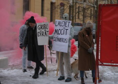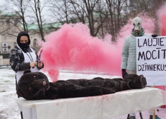 "Dzīvnieku brīvība" akcijā pie Saeimas pauž atbalstu kažokzvēru audzēšanas aizliegumam Latvijā