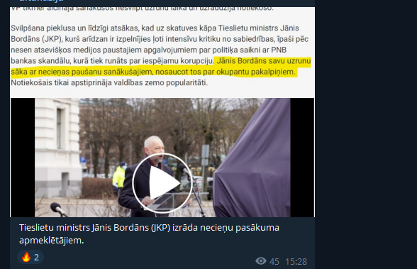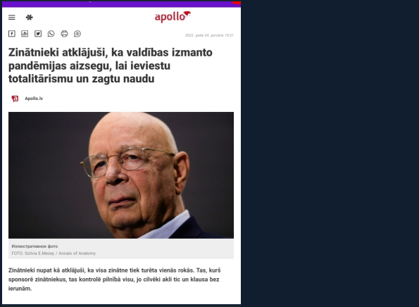 Lielisks piemērs ir pirms kāda laika vienā šādā “Telegram” grupā publicētais ekrānuzņēmums ar it kā ziņu portālā Apollo.lv atrodamu publikāciju: