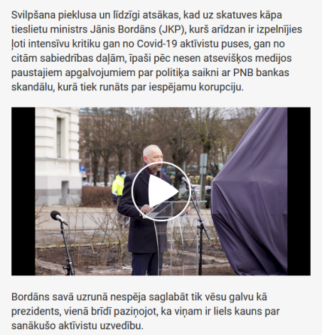 Šādu piemēru gan ir vairāk. Viens no nesenākajiem – Jauns.lv publikācija par PSRS disidentam Gunāram Astram veltītā pieminekļa “Nebaidies!” atklāšanu: