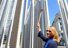 Pirmdien laukumā pretī Ministru kabinetam tika atklāts mākslinieka Ivara Mailīša interaktīvais vides objekts "Skaņu stabules Latvija skan", kas ieskandinās šīs vasaras trīs lielāko kultūras notikumu pamatvērtības.