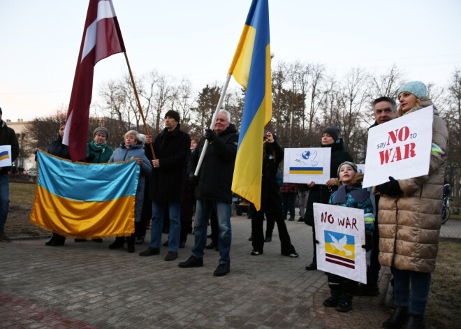 Mītiņos visā Latvijā iedzīvotāji pauž atbalstu Ukrainai un aizlūdz par tās brīvību un iedzīvotājiem