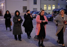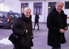 FOTO: ļaudis ierodas uz Alvja Hermaņa iestudējumu ''Viss zem debesīm'' Jaunajā Rīgas teātrī