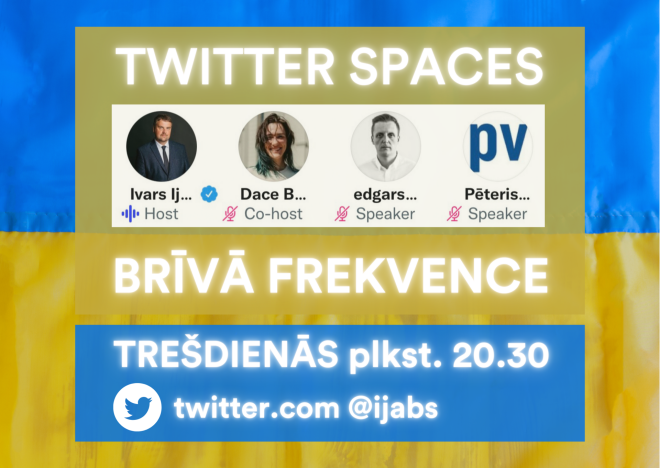 Katru trešdienu pulksten 20.30 Ivars Ijabs sarunājas par svarīgāko Eiropā un Latvijā ar kolēģiem un ekspertiem platformā Twitter Space. Pievienojieties sarunai twitter.com @ijabs
