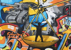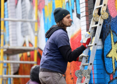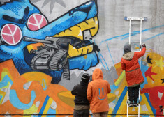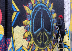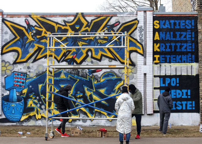 Mākslinieki Rīgā apglezno sienas, paužot atbalstu Ukrainai