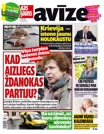 Vairāk lasiet jaunajā “Kas Jauns Avīzes” numurā – par leģendārā Finka pareģojumu, tirgotāju Šmuškinu, kļūmi ar glāzēm. Lasiet arī, kā Itālijas skolās ģeogrāfiju māca pēc kartes, kur Baltija iekļauta Krievijā; kas atrasts cilvēku bezatbildības dēļ mirušā lāča vēderā; Putina fašisti ārdās arī Latvijā; kas sankciju ietekmē Krievijā kļūst par deficītu; Liepājā atklāta glezniecības vecmeistara Rozentāla mazmazmazdēla Anša izstāde.