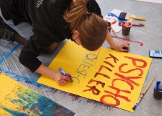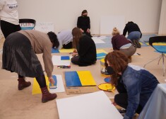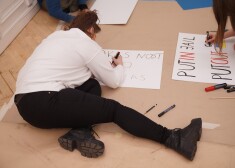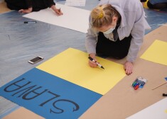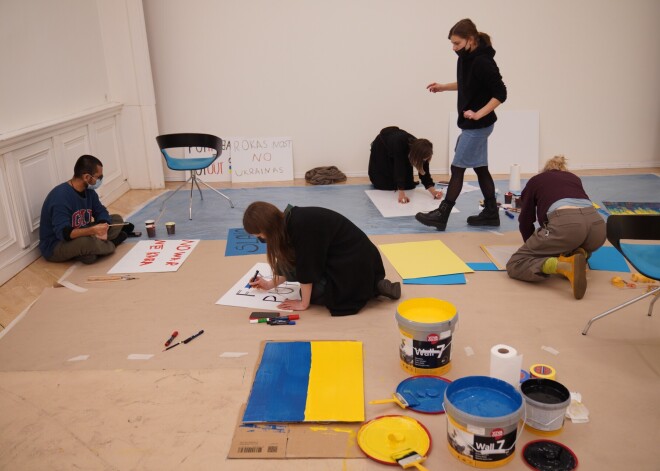Ļaudis gatavojas gājienam "Kopā par Ukrainu! Kopā pret Putinu"