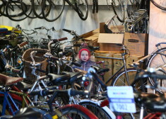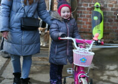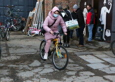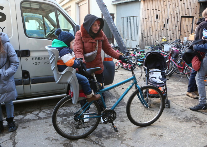 Ukrainas bēgļiem Rīgā izsniedz saziedotos velosipēdus