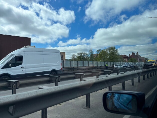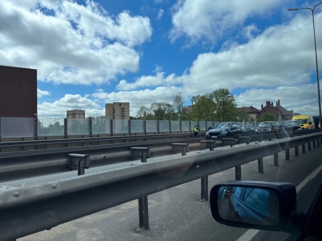 Šorīt pēc pulksten 10 uz Dienvidu tilta bija gandrīz apstājusies automašīnu satiksme virzienā no Pārdaugavas uz Rīgas centru, jo bija notikusi avārija, ziņoja kāds portāla Jauns.lv aculiecinieks.