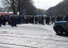 Ļaudis dodas uz pasākuma "Par atbrīvošanos no padomju mantojuma" koncertu