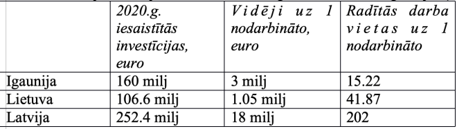 Ja salīdzina piesaistīto investīciju apjomu uz vienu darbinieku, tad jau pie esošās sistēmas Latvijas rādītāji ir labāki nekā kolēģiem Lietuvā vai Igaunijā: (dati - LIAA)