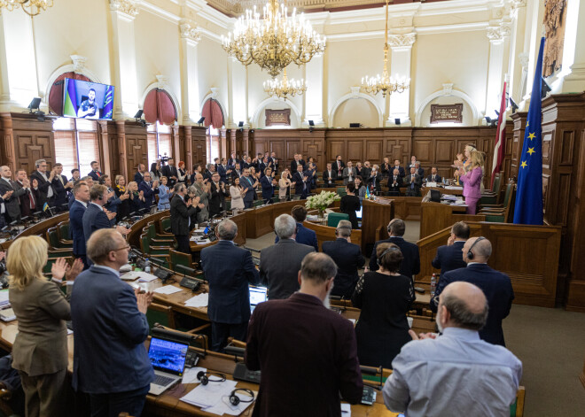 Saeimas deputātus un Latvijas tautu uzrunā Zelenskis
