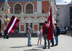 Kamēr domē lēma par okupantu pieminekļa nojaukšanu, Rātslaukumā pulcējās cilvēki