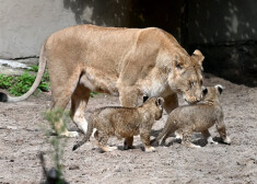 Rīgas Zooloģiskā dārza Āfrikas lauvu ģimenē 31. maijā dzimušie lauvēni tikko nosvinēja divu mēnešu jubileju, ir veselīgi, attīstās atbilstoši ...