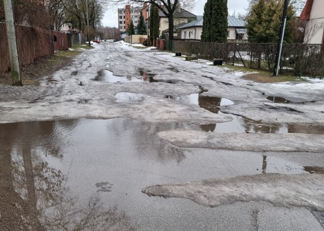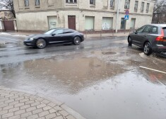 Rīgas ielās veidojas lielas peļķes un satiksmei bīstamas bedres
