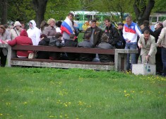 Pie "okupekļa" Uzvaras parkā turpina pulcēties arī 10. maijā