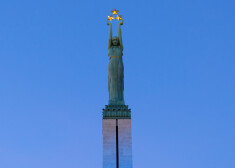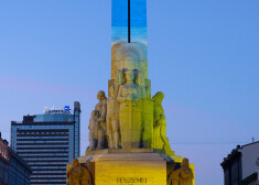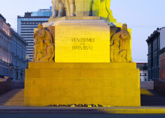 Godinot Ukrainā cietušos un bojāgājušos, Brīvības piemineklis izgaismots Ukrainas karoga krāsās