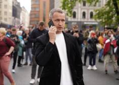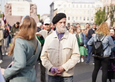 Sabiedrībā pazīstami cilvēki gājienā par atbrīvošanos no padomju mantojumu 2022.gada 20.maijā.
