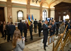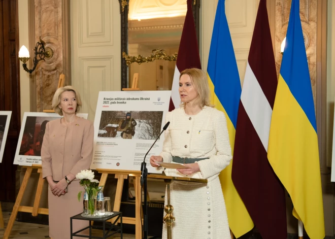 Viņa norādīja, ka iniciatīva Saeimas namā izstādīt ukraiņu žurnālista un dokumentālā fotogrāfa Maksa Levina darbus, kuri tapuši Krievijas izraisītā kara Ukrainā pirmajās dienās, nākusi no Ukrainas parlamenta – Verhovna Rada – priekšsēdētāja Ruslana Stefančuka. Trīs jūru iniciatīvas samits ir piemērots brīdis izstādes atklāšanai, jo pulcē dalībniekus no valstīm, kuras vieno vēlme stiprināt demokrātiju un pretoties Krievijas brutālajai agresijai tepat Eiropā, akcentēja Saeimas priekšsēdētāja.