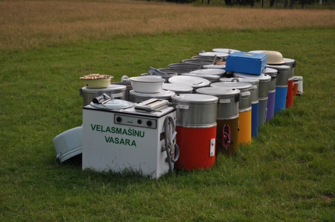Veidojām arī sacensības “Lielā veļas diena”, kur piedalījās dažādu šķirņu suņi. Sacensībās tika izmantotas jau 28 veļas mašīnas. Beigu beigās mums ir izveidojies vesels veļas mašīnu ganāmpulks. Mums ir ne tikai kazu, aitu un zirgu ganāmpulks, bet arī savs veļas mašīnu ganāmpulks.