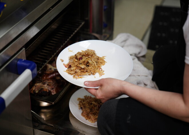 Cilvēki Rīgā pret ziedojumiem bauda ukraiņu boršču un citus gardumus