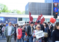 "Latvijas Krievu savienības" atbalstītāji gājienā aicina nepāriet uz izglītību latviešu valodā