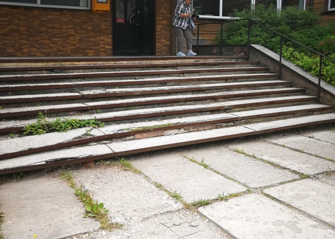 Kā pašā Saulkrastu centrā var atrasties publiska ēka, kuras kāpnes ir avārijas stāvoklī? Vai tiešām neviens no Saulkrastu novada būvvaldes pēdējā laikā nav nosūtījis nevienu vēstuli vai saņēmis kādu paciņu, lai neievērotu šo defektu, kuru var uzskatīt pat bīstamu cilvēku veselībai un dzīvībai?