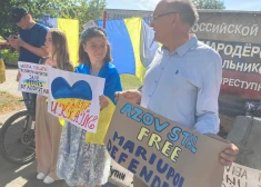Pikets pie Krievijas vēstniecībai pret represijām, kas vērstas pret "Azov" gūstekņiem